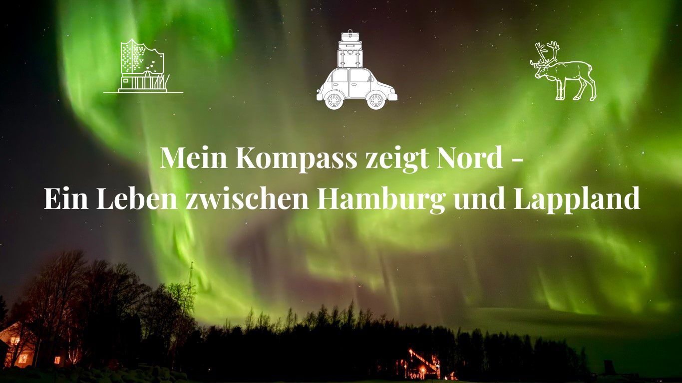 Mein eigener Kompass zeigt mal gen Norden – in meine zweite Heimat, ein 200-Seelen-Dorf in Nordschweden. Dann wieder gen Süden – in die 2-Millionen-Metropole Hamburg, meine Wahlheimat seit 2016. Dieser Abschnitt meines Lebens zwischen zwei Extremen begann 2022 mit einem Buchprojekt in Schwedisch-Lappland. Ich wollte über das Leben im Takt der Natur und der acht Jahreszeiten nach samischem Kalender lernen und schreiben. Aus diesem Jahr wurde für mich eine Reise zwischen zwei Welten – und aus mir eine Pendlerin auf gut 2000 Kilometern mit dem Ziel, Lärm und Stille ebenso in Einklang zu bringen wie Schnelllebigkeit und Entschleunigung.